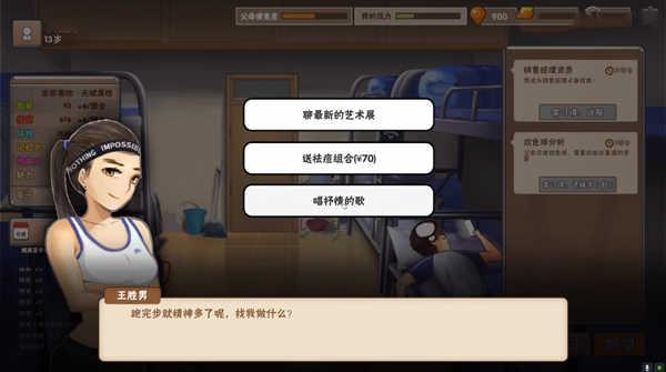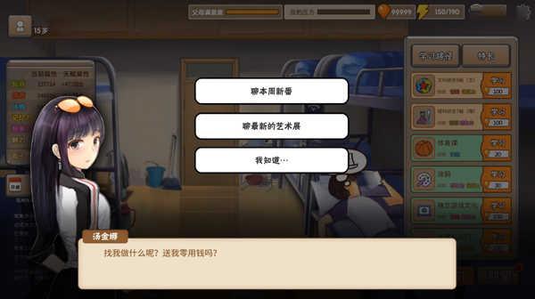 8、娱乐可以降压力,压力降到0可以给零花钱加行动力什么的。