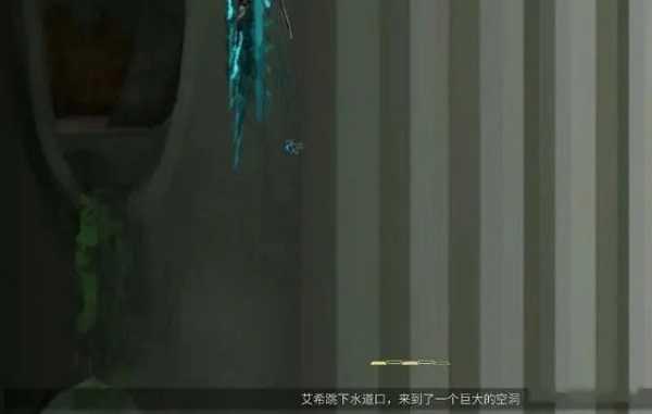 此时旁白会让艾希开启悬浮桥,这里可以不听从旁白指示,直接往悬崖下面跳,连续跳3次后触发隐藏剧情。等旁白说完后,可继续往下跳开启隐藏房间。