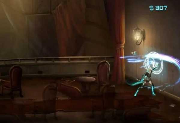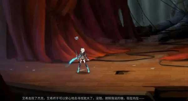 继续前进来到月夜森林,由于在教学关卡中被达哈尔攻击后,这里的桥已经消失了,此时选择往下跳可进入下水通道。也可以选择连续空中飞燕加跳跃跳到右边雕像后面触发隐藏剧情,然后向右走可以直接跳过下水通道进入弥城死镇。
