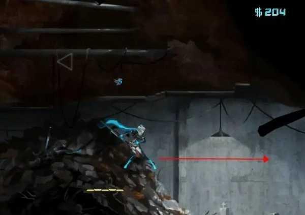 然后一路向右过了一个向上往左的房间后,来到一个分支房间,这里往右上走是一条分支结局(该结局影响真结局达成)。左上是一条死路,但里面有大量金币,建议去转转(左上会遇到 一个新的强力力兵种,是前期两个小怪的结合体,该兵种硬直很高还有抓取技能,所以对付他时需要灵活闪避)。