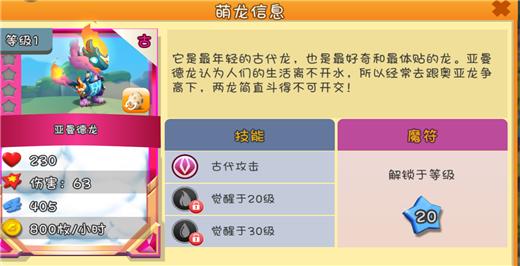 玩家喂食萌龙宝宝可以让它升级,并解锁更高级别的技能与属性,此外玩家还可以定期地抚摸萌龙,从而让萌龙更加更新,这样萌龙就能够给玩家赠送额外的金币了。