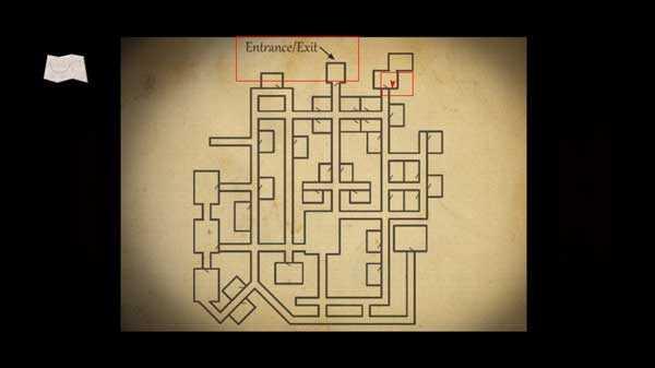 1、游戏开局就是在出口这边的楼道里,玩家将桌子上的地图拿好之后,就可以开始找线索了。游戏通关的要求就是收集不同地方隐藏起来的书籍,当你将八本书籍全部收集好了之后返回到出口这里就可以通关了。