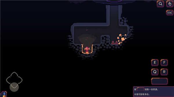 2、挖到矿后,点击此键可以拾取,然后控制角色将矿石拉上去,需要注意的是你拉的矿石越多,你的移动速度也会越慢