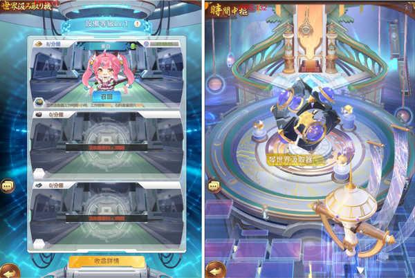 玩家可以透过时间中枢中的世界汲取器,消耗人偶的体力取得大部分后宅建设的道具,每次启动后将持续工作五小时,也可以提前结束获得对应时间的奖励。