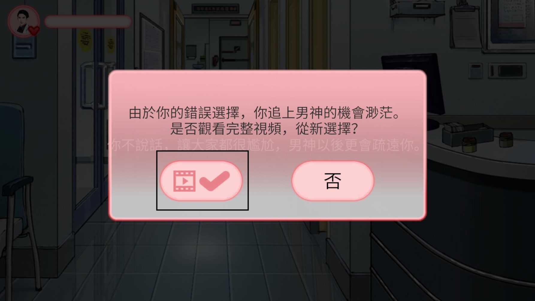 6、但是不是一直都可以看广告重来的哦,只有一次看广告的机会,要是心动值还是变为0了,你就会被心动男生拉黑,并且真的从头开始