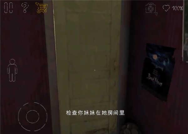 出门进入打开另一个房间下楼,到二楼之后之前前往厨房,会看到一个手电筒,转弯出来点击正对厨房的门触动剧情。