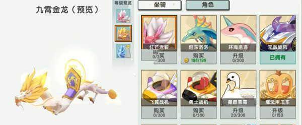 接下来就可以直接购买尼东洛洛坐骑了,需要大家集齐198个迷你币,当然要想获得进阶版的豪华尼东洛洛,大家就必须将坐骑集齐300个碎片才能进行兑换,玩家们装备上这个坐骑之后,不仅可以提供移动速度,还装备了特殊的飞行效果,但是是有一定的冷却时间的,所以在战斗的时候,大家一定要找准时机在释放他的飞行技能。