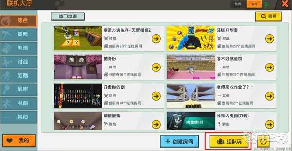 首先,咱们进入联机大厅后,会发现下方有个【组队玩】的按钮,这个就是组队功能啦,点击后就会进入组队界面哟!