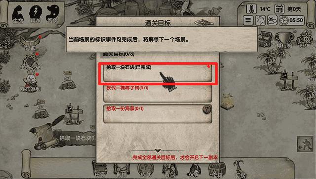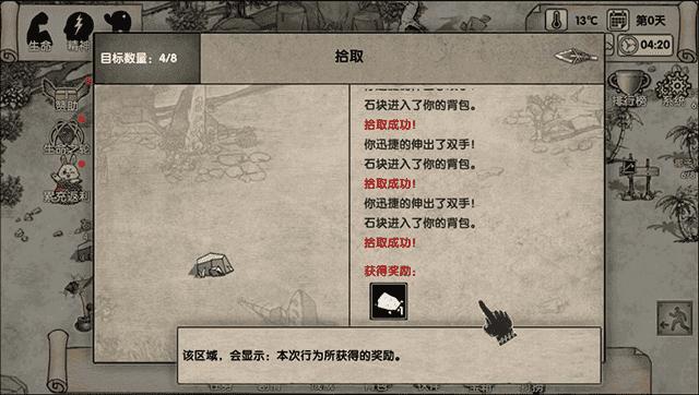 10、现在在沙滩上点击石块进行拾取;