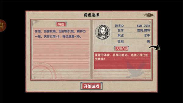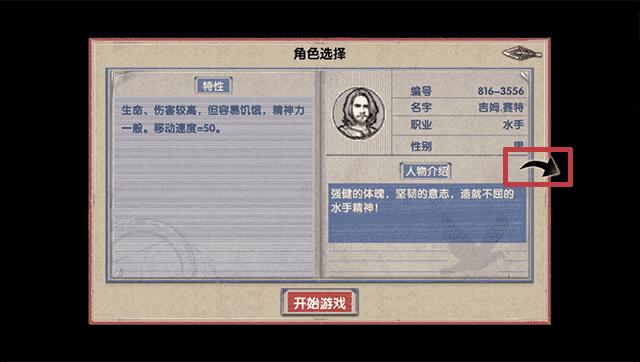 3、在这了按红色方框内的选项选择好角色后找到并点击“开始游戏”按钮选项;