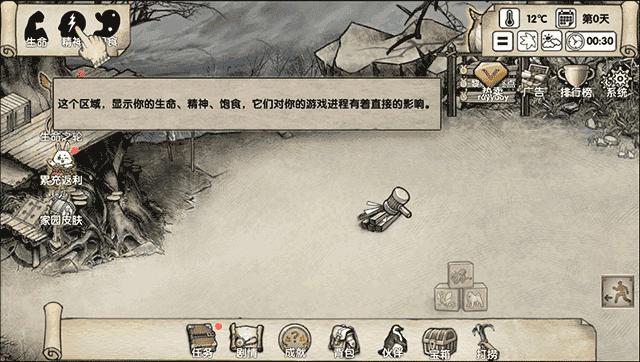 6、这个区域会显示你的生命、精神、饱食,他们对你的游戏进程有着直接影响。