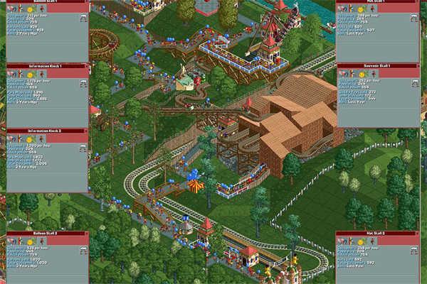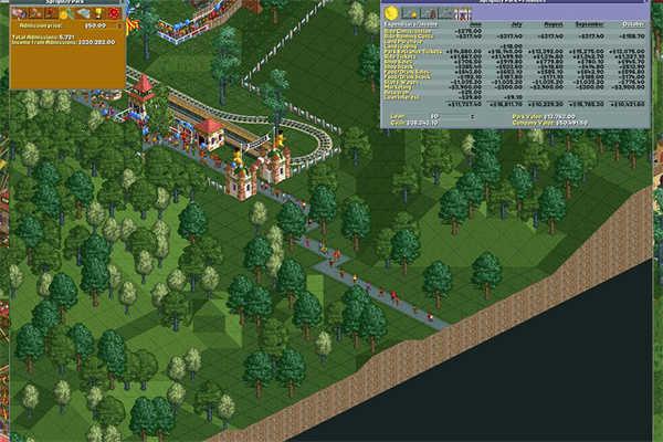 1、老规矩,建过山车+拉人。这招搭配刷钱机在欢乐天地简直就是无敌的存在,然而在本关中会遇到不小的阻碍。首先,在很长一段时间内根本就没有支持Powered Launch Mode的过山车出现(也许根本就没有,这里只研究出最多六款);其次,在初期没有承载量大的过山车出现(先期四款全部为单节车厢的木质过山车),运力堪忧;第三,本关空余地块有限且地形比较复杂,建造大型过山车颇为困难;第四,建造成本大,本身已经要求从游戏开始的每个月都要有1w的收入了,如果建造大过山车还需要把这项成本摊到每个月中,难度过高。