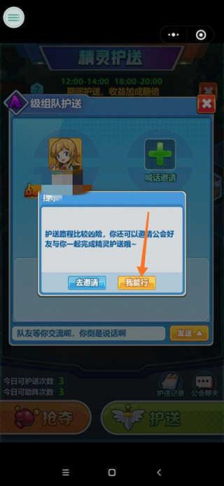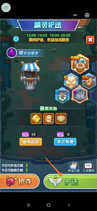 可以看到此时已经进入护送页面,在护送页面还可以通过战斗获取其他护送队的资源;也可以直接退出,在后台护送即可,到时间了就获得资源了