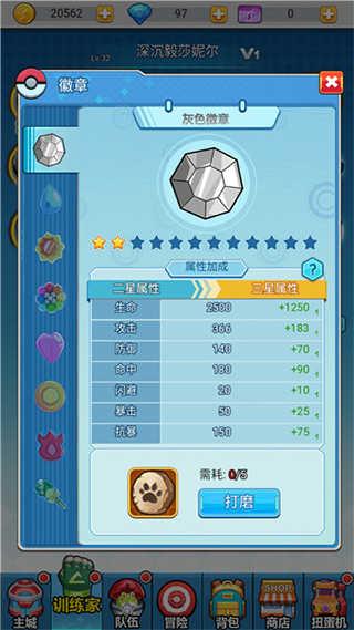 4、徽章的打磨需要徽章打磨石,大模式一般可以通过模拟道馆和钻石商城购买获得。