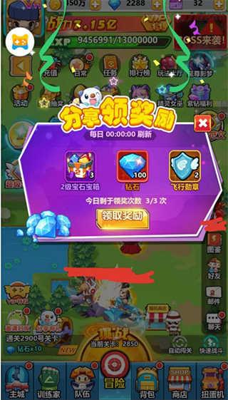 1、挂机闯关卡获取钻石(目前关卡上限为6000关,每五关10钻石)