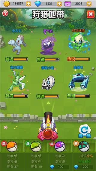 3、射击精灵之前需要先装弹球,射出不同类型的球,会给野生精灵造成的伤害不同,射速也不同。