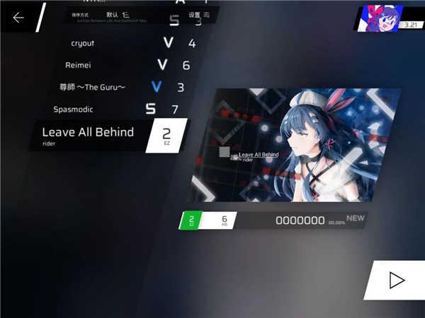 把上一首歌 Spasmodic 任意难度打上A即可解锁 Leave All Behind