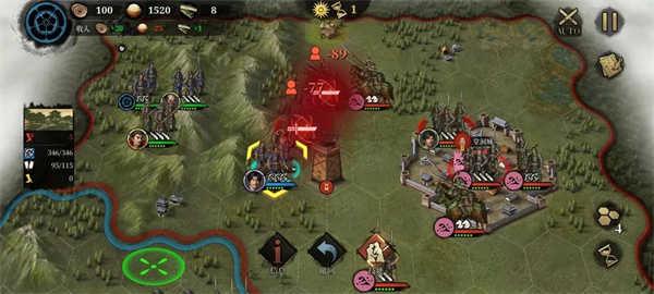 9、点击篮圈的己方单位后,出现的篮圈都是玩家可以移动的单位。红圈部队就是本次战斗的主要目标,击败他们即可完成任务,而且红圈不仅只会出现在作战单位上,还会出现在建筑上;
