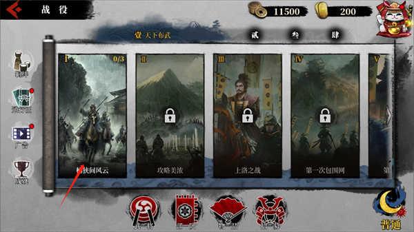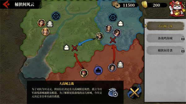 16个章节,超过200场著名的古代军事战争,「桶狭间风云」、「攻略美浓」、「天下布武」等历史事件,再现日本战国的乱世风云。