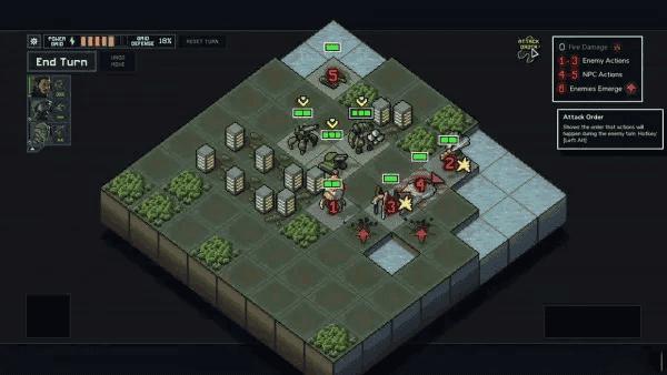 尽管充斥着巨型外星人和机器人,但“Into the Breach”拥有着国际象棋的DNA。 与国际象棋一样,你应该努力控制地图的中心地带。 虽然多年的战略游戏可能会让你相信远程机甲(Ranged Mech)在后面更好,但这会造成其只能朝一个方向攻击,从而严重限制了他们造成伤害的能力。 相反,让你的小队(Squad)镇守地图中心则可以轻易地移动到地图各个角落,以防止怪兽们破坏人类建筑。 当然,如果脆弱的远程机甲让你感到担忧,那么用“能力核心”为其提升HP则不失为一个良策。