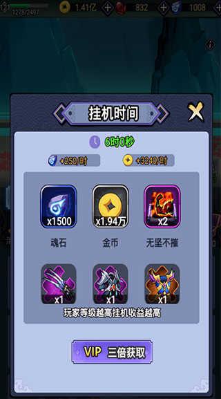 等级每10级提升一次魂石的收益,这里可以看到,我的收益是6小时加三倍vip获取是4500魂石。如果按时收取的话,一天的收益就有4500*4=18000