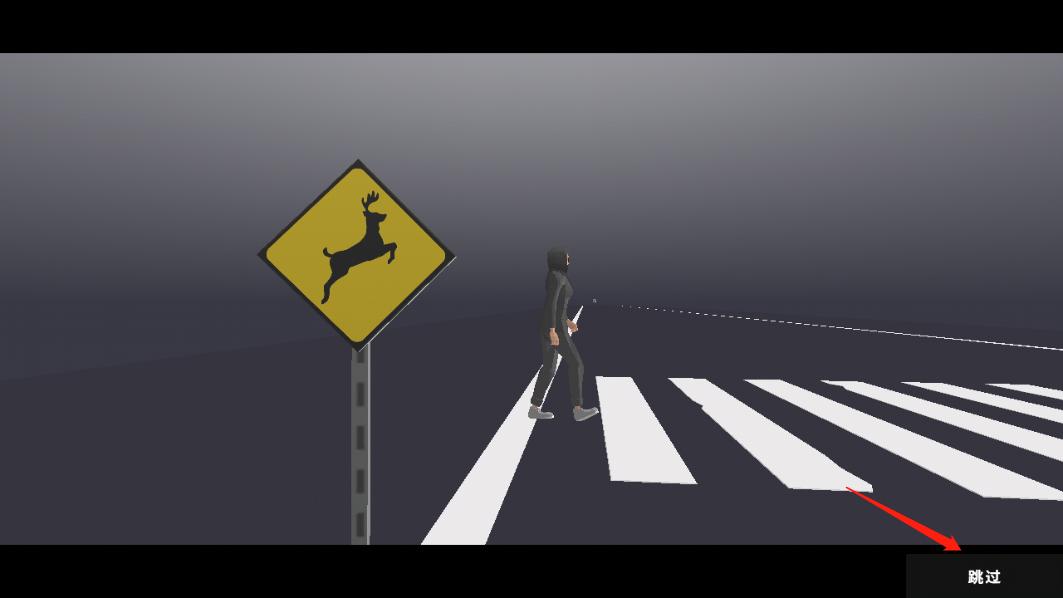 3、接着会进入一段剧情,玩家可以点击右下方的【跳过】;而剧情大概就是刚捏好的角色为了救一头鹿而被车撞了,于是我们顺理成章的成为了鹿,开启了一段新的鹿生,先让我缅怀一下刚捏好的主角吧……