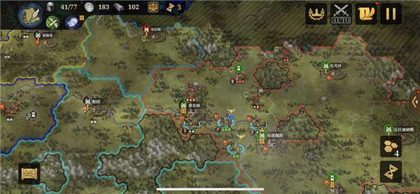接着我们来看第三个带星关石河之战。本关在第一章里算比较难打的一关了。新手玩家建议先提升一下自己的兵种科技,或者拥有一些好用的将领之后,再来挑战这关。建议是先去击败右下角的敌方红圈部队,右上角的红圈城会不断出兵,比较难打下来,可以最后集中兵力进攻。