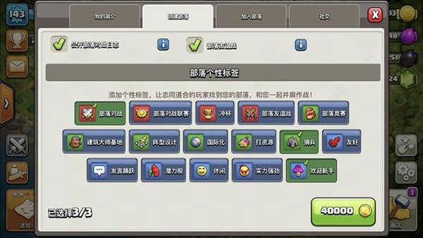 2、将部落标签设置为“捐兵 友好 欢迎新手”;主世界杯段调整为100-600杯;任何人均可加入;说白了就是不设置任何门槛从游戏中收人,只要开门的时间够长,一定会有小号进来,每进来一个人都要打招呼接待并及时给予援兵,只要高级援兵及时到位,很多小号就会留下。在旧收人机制下,一般1个小时就能收到20-30个新手小号,但在新的收人机制下大概6个小时才能勉强收够10-15个小号,这需要首领有足够的耐心。当部落有一定稳定人员和部分高本后,即可去各种APP发布招人贴,进一步扩大规模,提升人员质量。