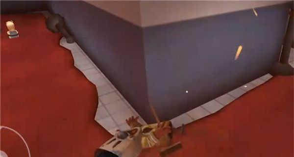 2、回去调度室门口,对机器人开枪,他就会往前走,从布置好的陷阱掉下去。