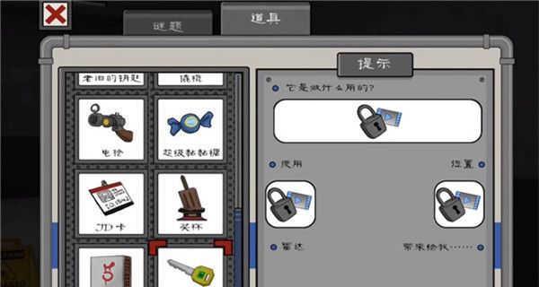3、你可以点击提示,了解游戏中的玩法技巧,例如:怎样把锁破坏,强行开锁等等。
