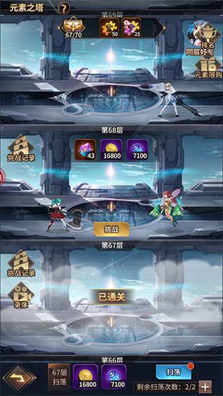 (1)元素塔:突破石、灵力以及金币三大必需资源的产出地,每通过闯关10层,都会有一个礼盒奖励,里面有传说英雄碎片、史诗级传说级高星装备,还有超稀有的光暗属性碎片。元素之塔限购商城里面有各种限购的稀有道具。看到这么多的奖励,都是超低折扣的,小艾也是忍不住要买买买呀~