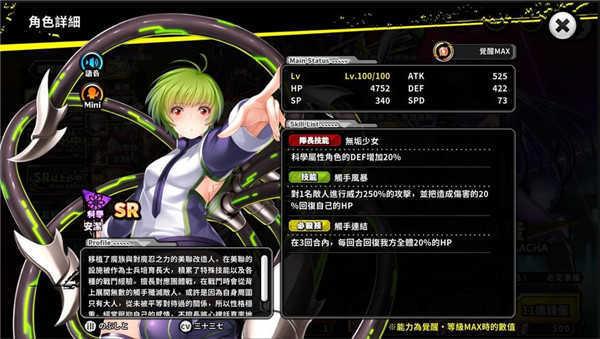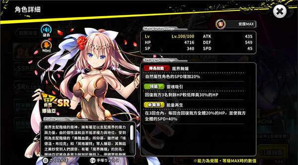 全队+60%ATK,+60%DEF,+64%HP,每回合固定恢复20%HP,52SP。