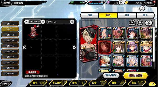 1号位活动SR厨娘情人小乌鸦,瞬回HP/SP奶(无限流引擎)。队长技精神+20%DEF,主要给队伍中的喜瀬蛍加生存。