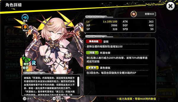 全队+60%ATK,+60%DEF,+15%HP,每回合固定恢复35%HP,246SP。