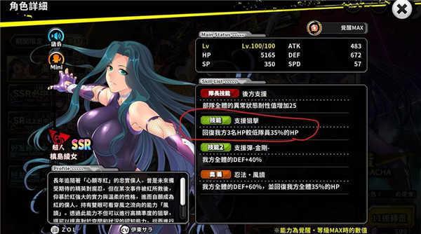 全队+60%DEF,+64%HP,每回合固定恢复35%HP,246SP。