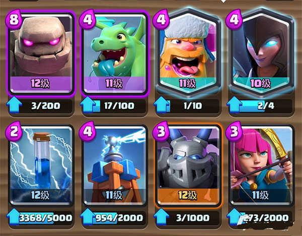 推荐原因:圣水消耗量少,有攻有防,如果对面选择的是高耗率卡牌的话,完全可以打他一个措手不及,并且卡牌容易集齐。缺点是,容易被女武神这种英雄压制,并且生命力低。