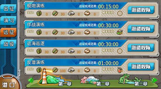 这里提督们可以进行特定的战役,都是历史上著名的海战,胜利以后可以获得一些资源奖励,并且有几率掉落舰船改造核心的,这些核心是舰船改造的必备物品。(而且这个核心也是可以出售的,可以获得一定的基础资源)