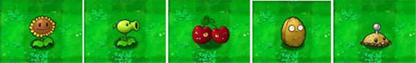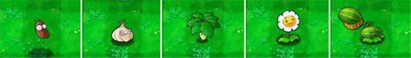 植物选择:向日葵、双子向日葵、樱桃炸弹、卷心菜投手、南瓜头、坚果墙、窝瓜、高坚果墙。
