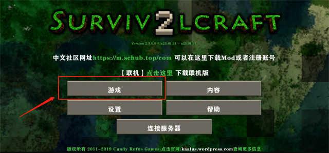 1、首先打开手机上的生存战争2.3联机版游戏,在首页点击游戏,再创建一个地图