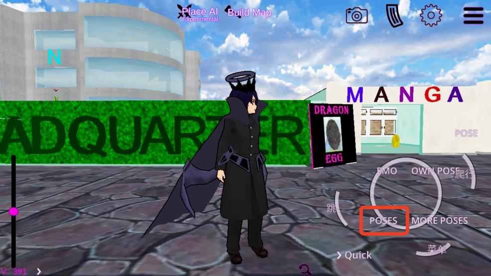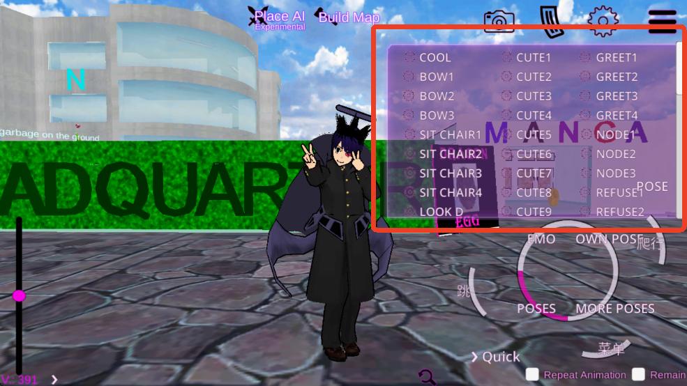 7、点击 POSES可以让人物使用各种姿势,例如,可爱的姿势,胜利的姿势,害羞的姿势或敬礼的姿势等等。
