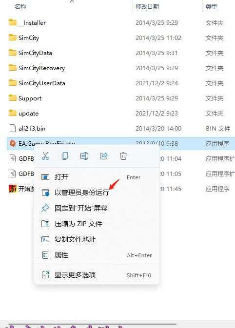 2、解压之后,需要使用管理员身份双击SimCity.exe才能运行;