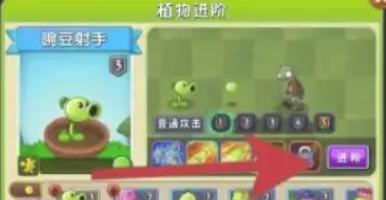 接着进入植物进阶界面,在这里就可以给植物快速进阶,点击一个豌豆射手,然后点击进阶按钮就可以快速进阶。