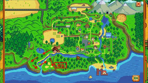 玩家可以在鱼店门口矮人支付250g直接传送回家。在最右边的船可以欣赏美人鱼秀。演出结束后按照秘密纸条上提示的顺序点击贝壳(1-5-4-2-3),可以触发一个隐藏剧情,玩家会得到一个特别的礼物珍珠(未获取秘密纸条也有效)