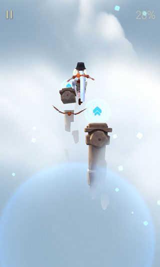 场景中会有单个的高台,上边有蓝色的标识,这也是弹跳的标识,跳起来之后控制左右方向,然后跳动到下一个落脚点,有时候高台中的台阶会进行变化,在变化的同时要迅速做出判断,滑动的快点基本没问题。