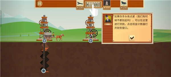 探矿者发现油井后我们可以在其身边安置油井设备,油井设备花费350元,当然这还没完,我们还要点击设备向下钻井寻找更精确的位置,切记钻井不是免费的,钻越深花费也越多,所以一开始我们可以一小段一小段距离的钻,减少不必要的资金损耗。