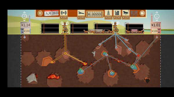 玩家在需要在找到合适的天然气后在它的四周使用导管连接起来,玩家需要选择适当大小的导管,太大的导管可能养不了这么多的天然气,反而浪费了玩家放管子钱以及玩家更多的操作的空间。