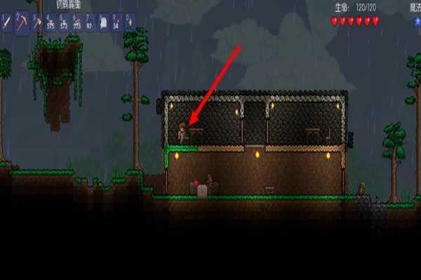 1、首先搭建一个战斗平台,最好在npc居住的环境之上,宇宙之下,长度最好超过100格(有助于后期打新三王中的魔眼和硬长直);