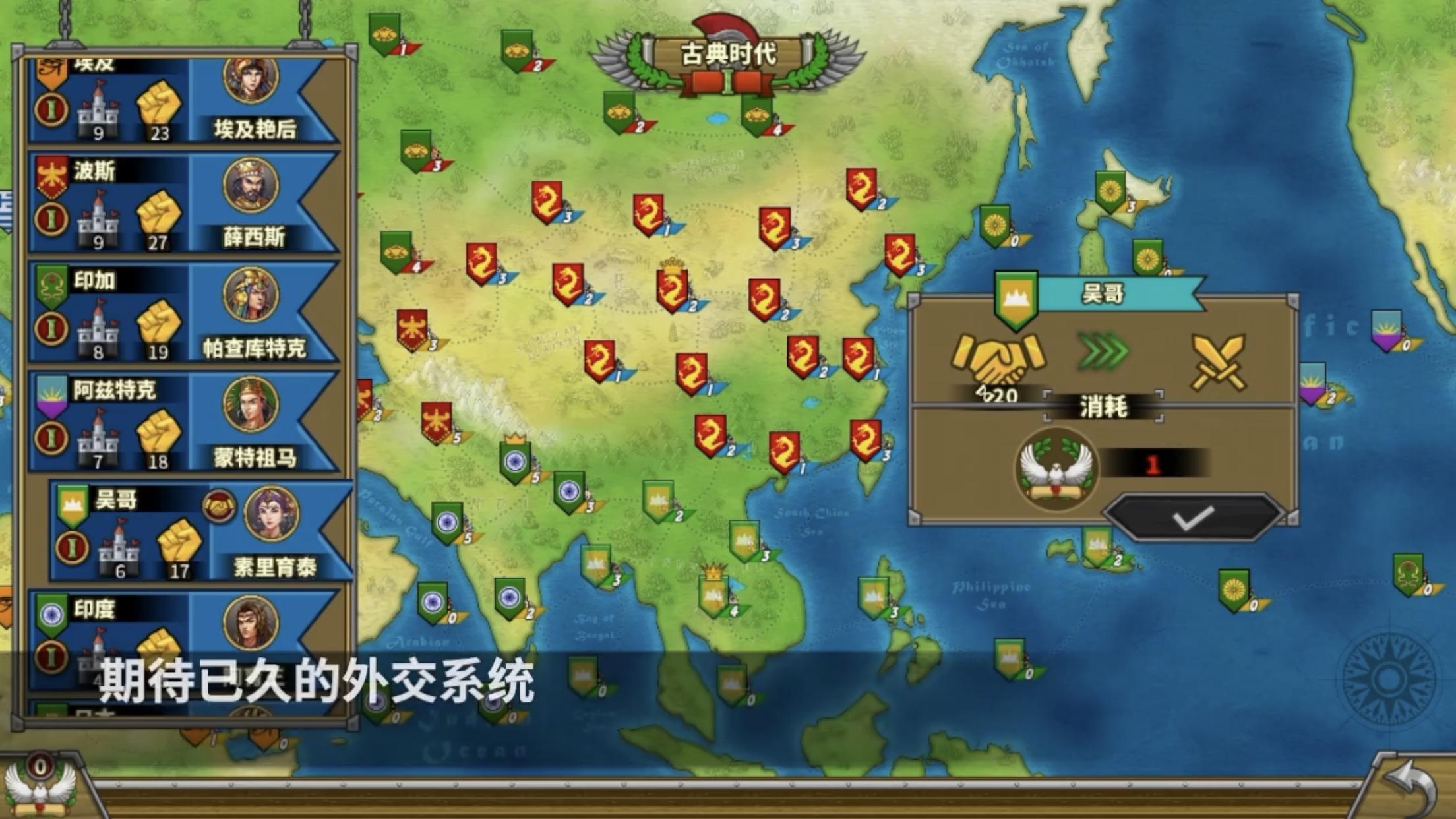 2、在该作中最大的创新亮点在设交系统上,随时对抗、宣战、贿赂多玩法;