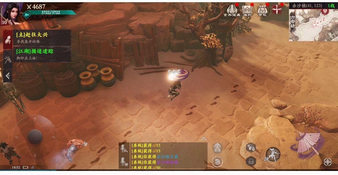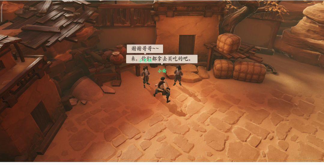 完成“赤沙血案”后便可了秀青楼,出门即可看见走过一名调皮的孩子会被一个奇怪的人撞倒,我上前询问了孩子才知道,她的钱被偷了。此时我零零子又奋不顾身的去帮忙找回钱。由于小偷已跑,但我们只需顺着脚印找到那人即可。走到脚印尽头有一个院子,我便躲藏起来留意观察院子里的情况,可行时快速进入击败小偷。