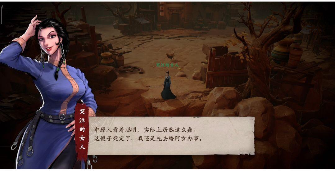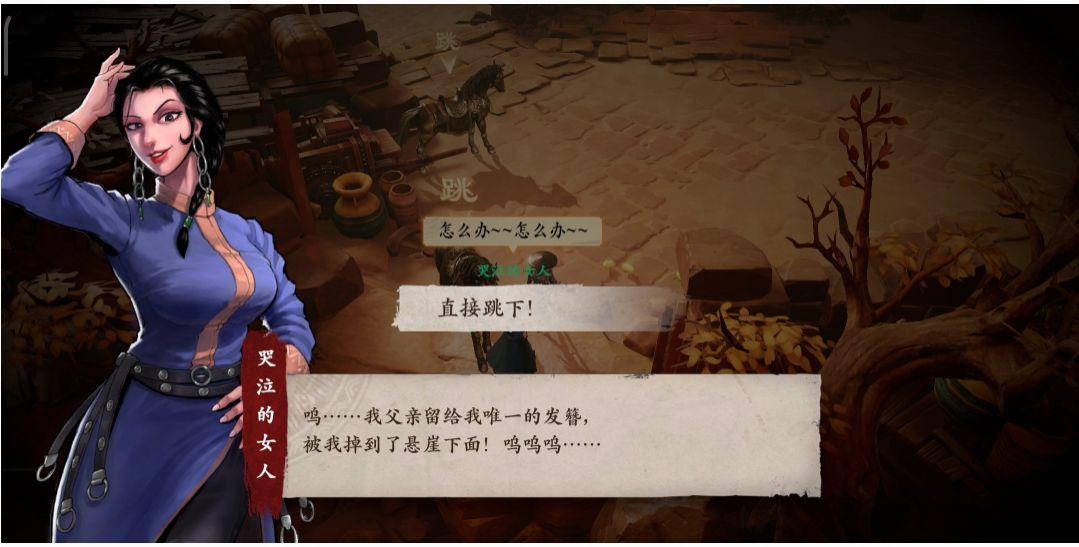 我们同样从“奇闻异志”内提供的线索找到坐标(90,55)的位置,会遇见一位哭泣的女人,与她了解情况得知她的发簪掉下去了,出于好心便帮她下悬崖捡发簪。